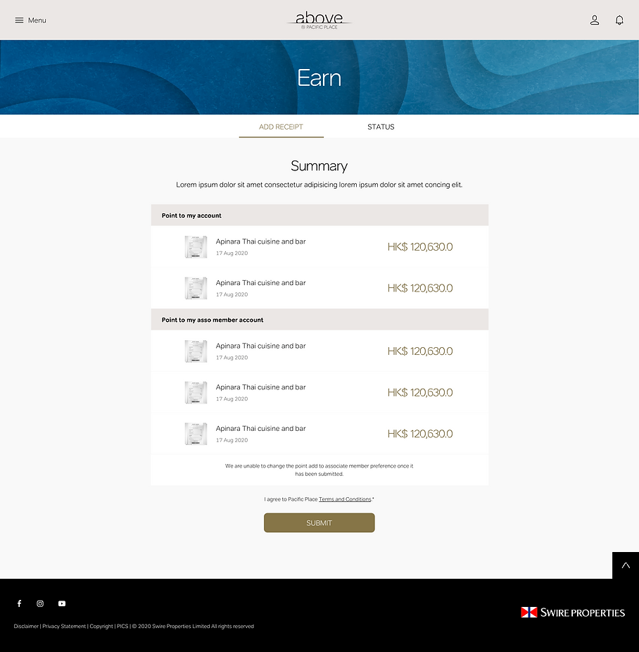 Pacific Place is a high-end shopping mall located in Hong Kong CBD. To awarding the loyal customers, a CRM website is created for points collection and prizes redemption. As a CRM platform the most challenging part should be the UX design, since the website structure is complicated with point collection, redemption, membership system, forms, listing and system notice. Although the structure is large and complex, the flow and interface design should be with clear guild and can be easily used which help encourage members keep on using the website.